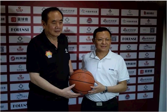 广东省篮球协会主席刘克军(左)与珠江啤酒总经理王志斌(右)