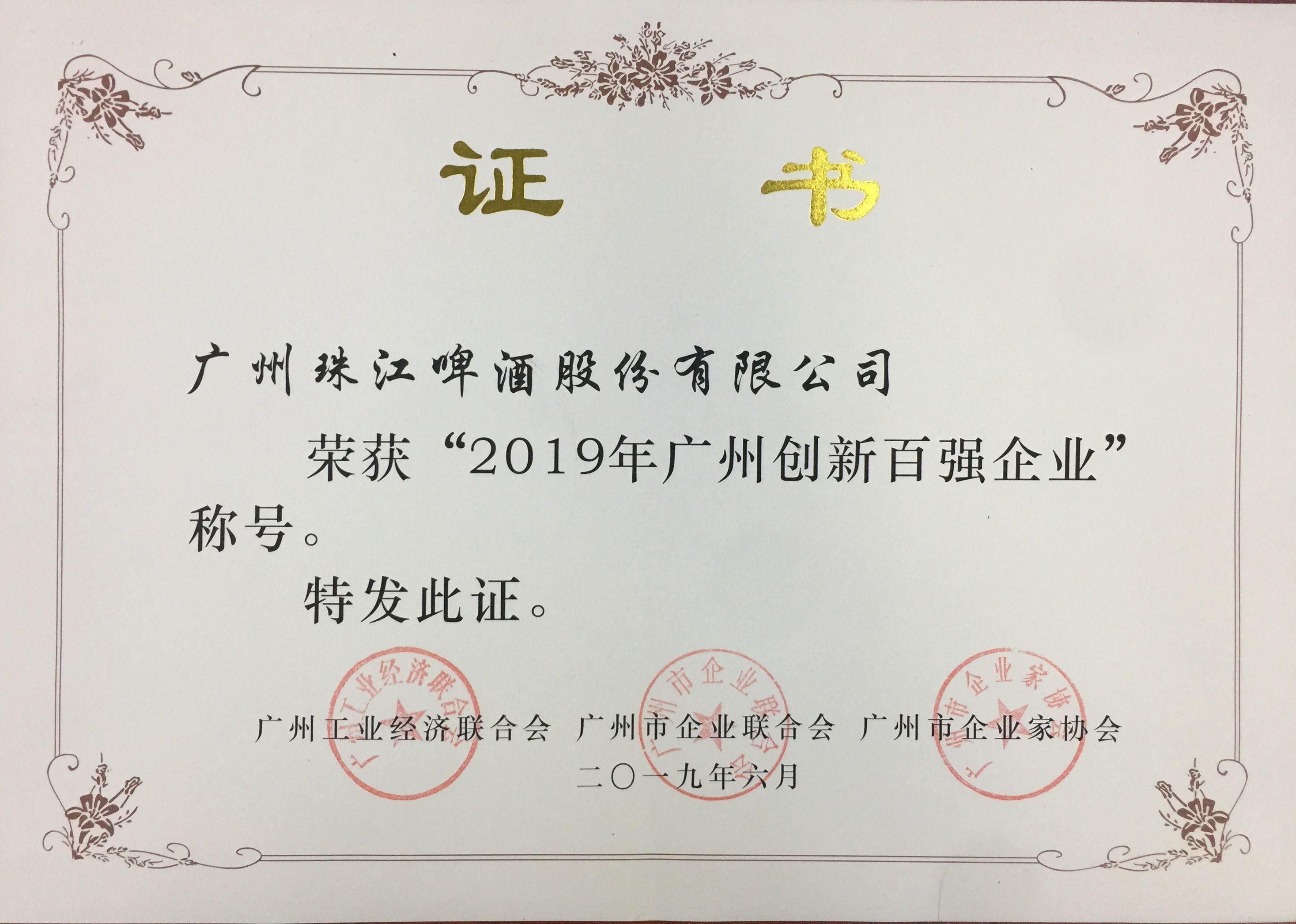 6月21日,珠江啤酒在品牌建设等方面表现突出,被广州工业经济联合会、广州市企业联合会、广州市企业家协会授予2019年“广州品牌百强企业”荣誉称号。2019年,珠江啤酒全面实施增品种、提品质、创品牌战略,加大品牌建设力度,发挥品牌影响力,为唱响广州品牌,促进广州经济持续、稳定、快速发展贡献更多的力量。
