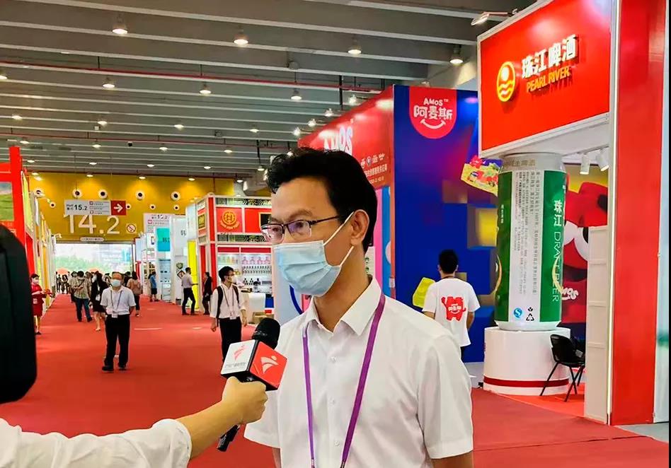 参展期间,卢春平代表公司应邀接受广东电视台采访,展示珠江啤酒产品特色和品牌亮点,让更多的海内外消费者进一步了解珠江啤酒品牌内涵,展现中国啤酒品牌的技术质量追求和科技创新成果。