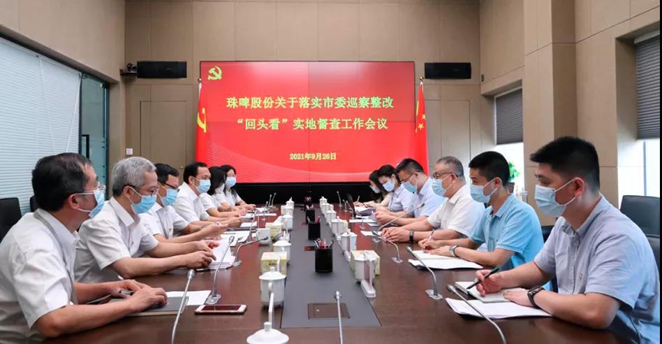 2021年9月26日,市纪委监委第七监督检查室主任谢柳青率市纪委监委巡视巡察整改“回头看”监督检查组到珠啤股份开展市委巡察整改“回头看”。珠啤股份党委书记、董事长王志斌,党委副书记、工会主席吴家威,纪委书记、监察专员廖持亮及珠啤股份党委职能部门负责人参会。