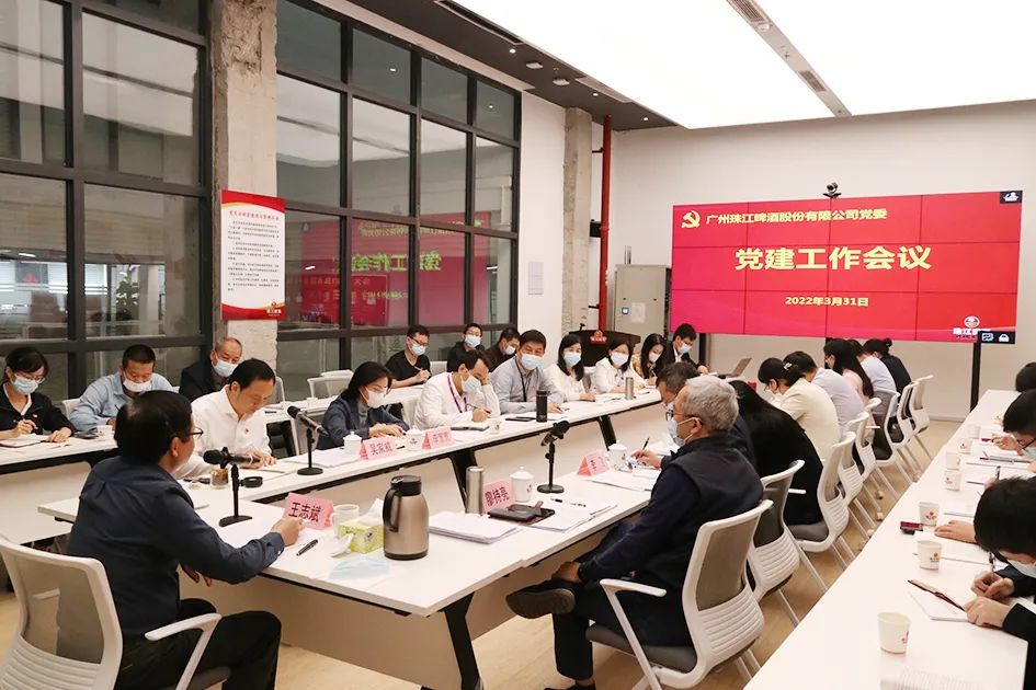 2022年3月31日,珠啤股份党委组织召开党建工作会议。珠啤股份党委书记、董事长王志斌,珠啤股份党委副书记、工会主席吴家威,珠啤股份纪委书记、监察专员廖持亮等公司领导参会并讲话,吴家威主持会议,各党组织负责人、政工人员等50多人现场或视频参会。