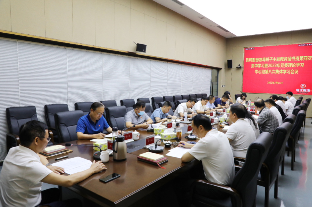 2023年7月14日,珠啤股份召开领导班子主题教育读书班第四次集中学习暨2023年党委理论学习中心组第八次集体学习会议,围绕“千万工程”经验案例、习近平总书记在文化传承发展座谈会上的重要讲话精神开展专题学习研讨。珠啤股份领导班子成员、高管、中层党员干部代表等19人参会。
