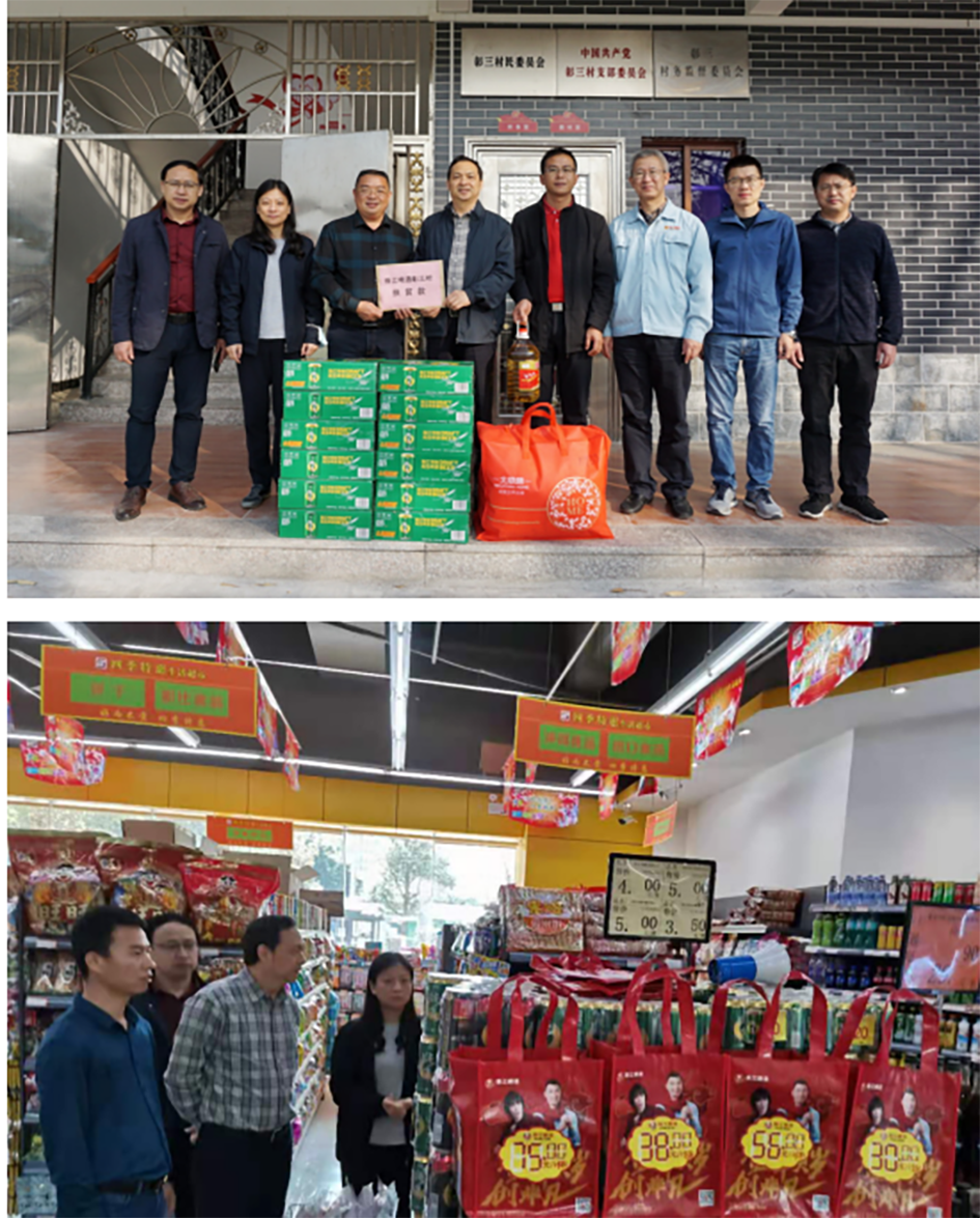 2021年1月27日,珠啤股份党委副书记、工会主席吴家威,总工程师涂京霞及梅州公司领导班子成员前往对口帮扶的咸和村、彰三村慰问驻村干部和村委会成员,并送上扶贫款和春节慰问品。随后驱车前往河源市,走访东南事业部销售市场。
