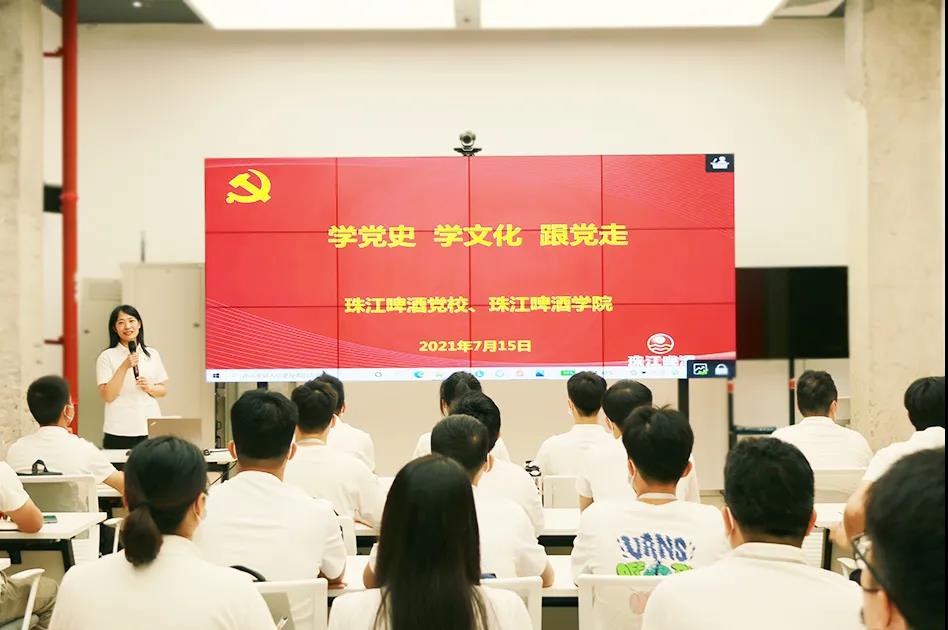 为深入学习贯彻习近平总书记“七一”重要讲话精神,推动党史学习教育走深走实,2021年7月15日上午,珠江啤酒党校、珠江啤酒学院举办2021年“学党史 学文化 跟党走”青年培训班,总部及下属企业入党积极分子、入党申请人、团干等120名青年通过现场及视频形式参加培训。珠江啤酒党校副校长,珠啤股份党委工作部、党委宣传部部长王江红讲《学党史 学文化 跟党走》专题党课。