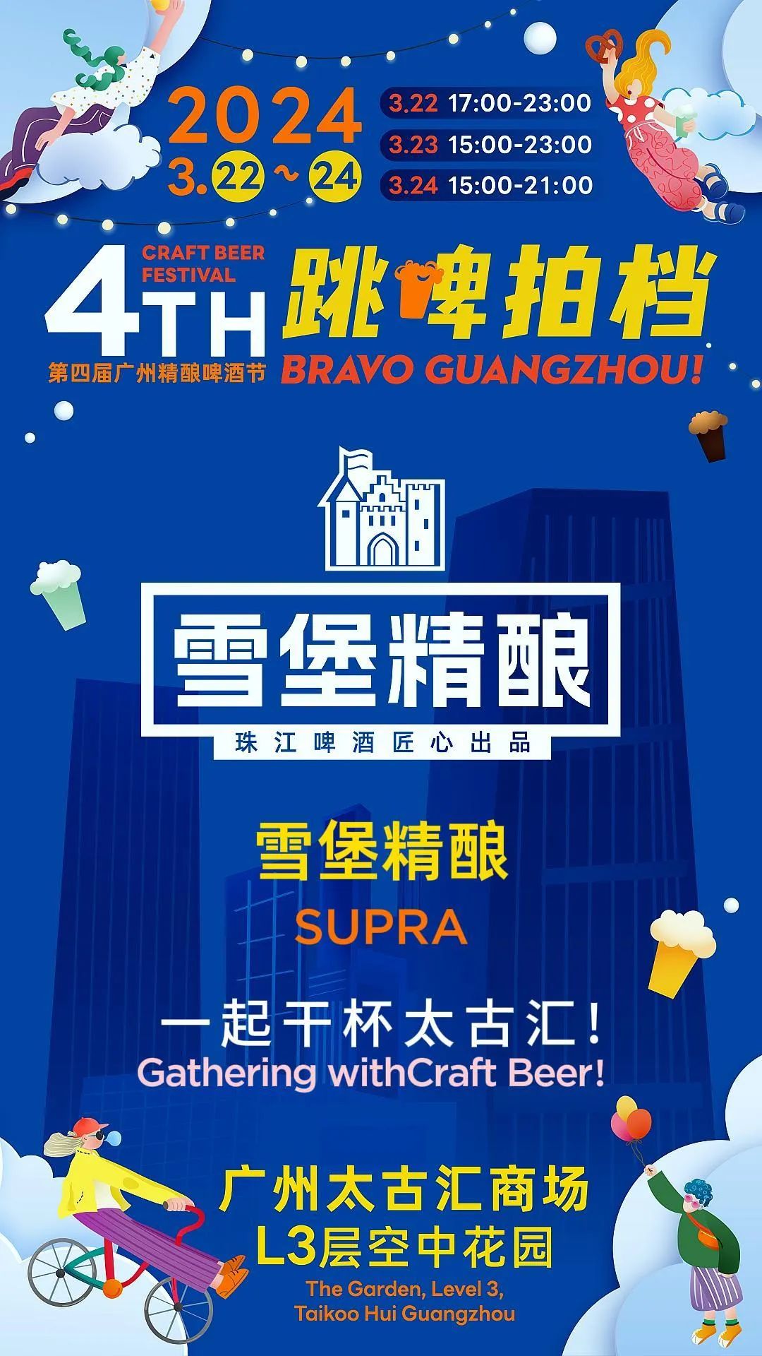 一年一度广州至专业又好玩的精酿狂欢节强势回归,雪堡精酿从首届开始就每届必到从不缺席,今年我们再次闪亮登场——“跳啤拍档”第四届广州精酿啤酒节,一起来干杯,就在广州太古汇!